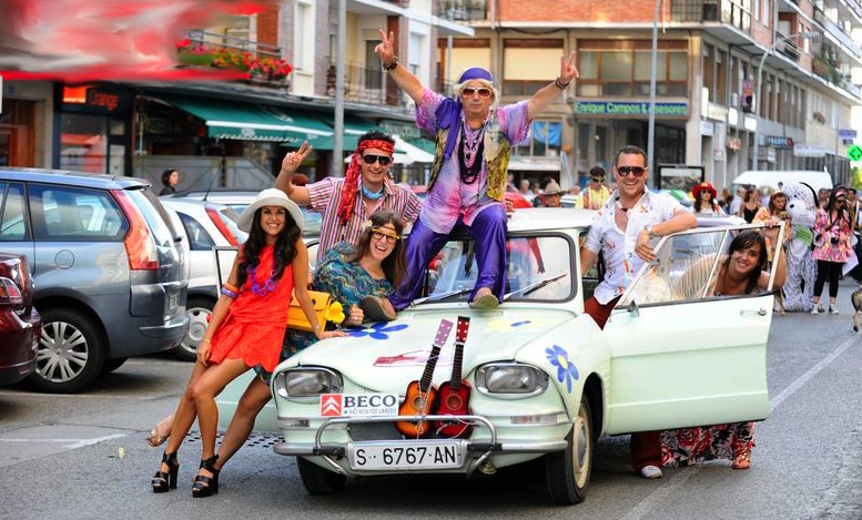 A las 20:00 horas. Concentración en la Plaza De la Constitución de todos los grupos y personajes de los años 60 – 70 YE-YÉS – HIPPIES, de aquellos maravillosos años.